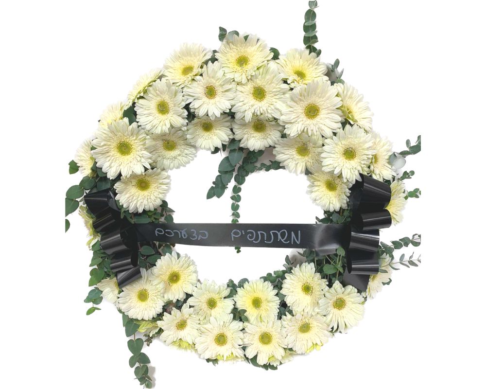 גלגל אבל מגרברות לבנות וענפי אקליפטוס.