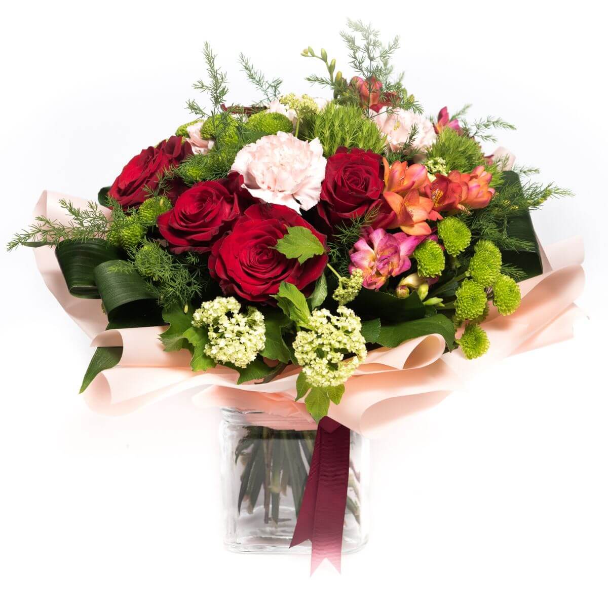 ורדים, ליזיאנטוסים, חרצית פונפון, פרזיה, סינדרלה וענפי קישוט מיוחדים אשר שזורים יחד באופן מושלם, מביאים לכל בית קישוט מלא בחום ואהבה.