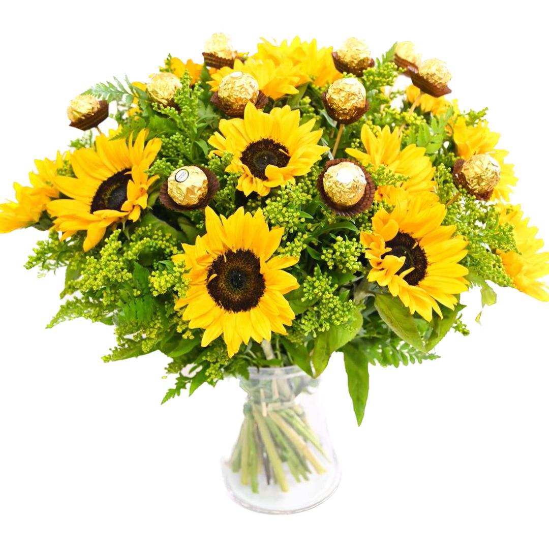 עם כדורי שוקולד פררו רושה שמבצבצים בין הפרחים ונותנים טאץ' מתוק וטעים.