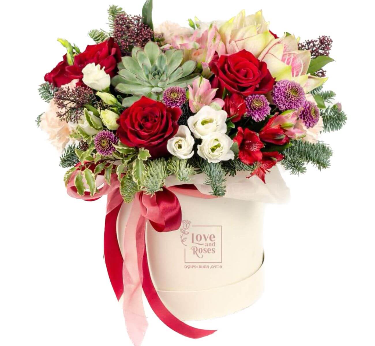 מגיע עם עם ענפי קישוט מיוחדים בקופסה מהממת בקוטר של 23 ס״מ, עטופה בסרט משי.